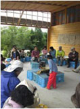2月開催。通常、第一・二土曜。「自らやる」をモットーに、農作物だけでなく、その加工も自らやって調味料を作ってみよう!ということで、はじまったみそ作り。種麹(たねこうじ)菌をお米に仕込むところから始めるため、2回に分けて行っています。2回目は、仕込んだ米麹を、大豆と混ぜて、壺に詰め、持ち帰ります。約半年後には、それぞれ家の味「手前みそ」が仕上がります。前年のみそを皆で持ち寄って試食したりもします。